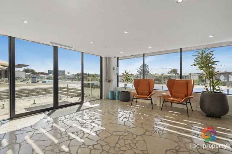 Elevated south facing apartment, located on level 7, is light filled and designed to capture flow through breezes. Fully serviced hotel living at its best, with 24-hour reception, gymnasium, lap pool, BBQ area, conference and events facilities, room service and onsite restaurant and café.