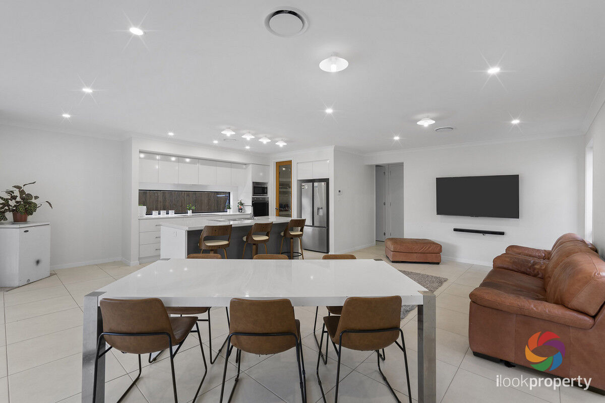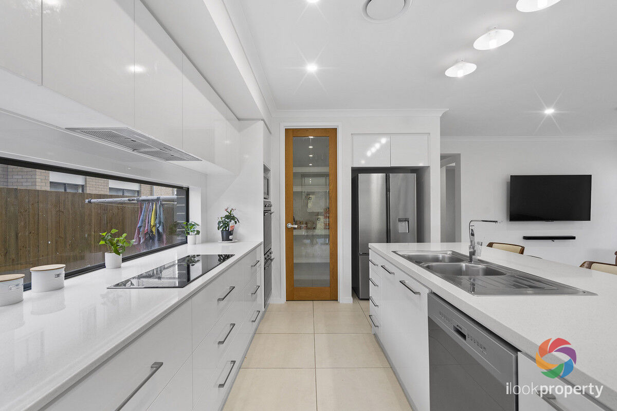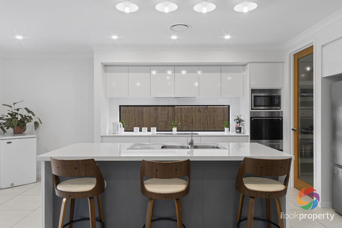Step inside and be greeted by the open plan layout, featuring multiple living areas to create a harmonious living environment. The gourmet kitchen is truly the heart of this home, complete with a double oven, walk-in pantry, and stylish stone benchtops that are complimented by a modern dishwasher. Adjacent to the kitchen, you'll find the built-in laundry, adding a touch of practicality to this beautiful abode.